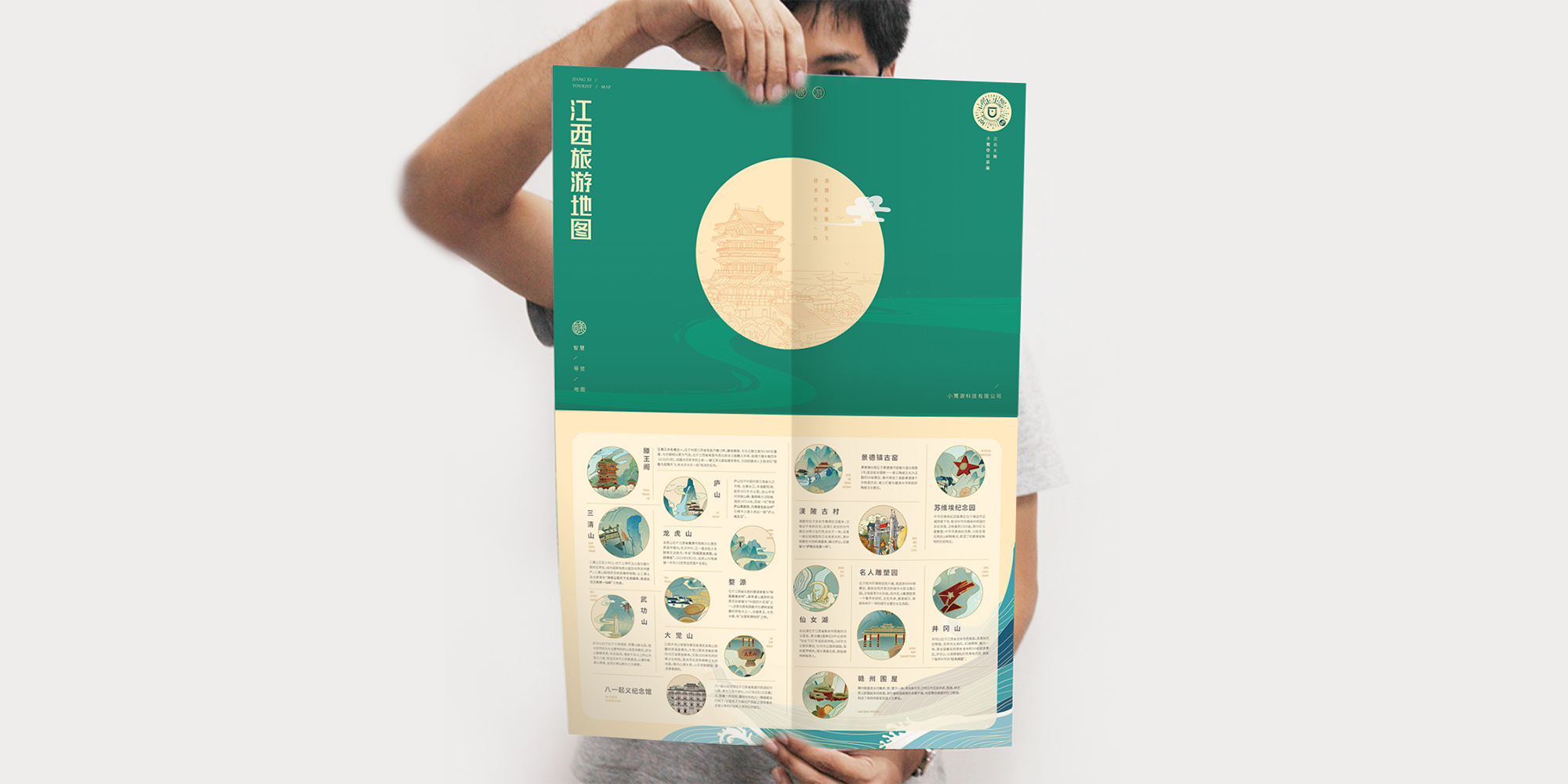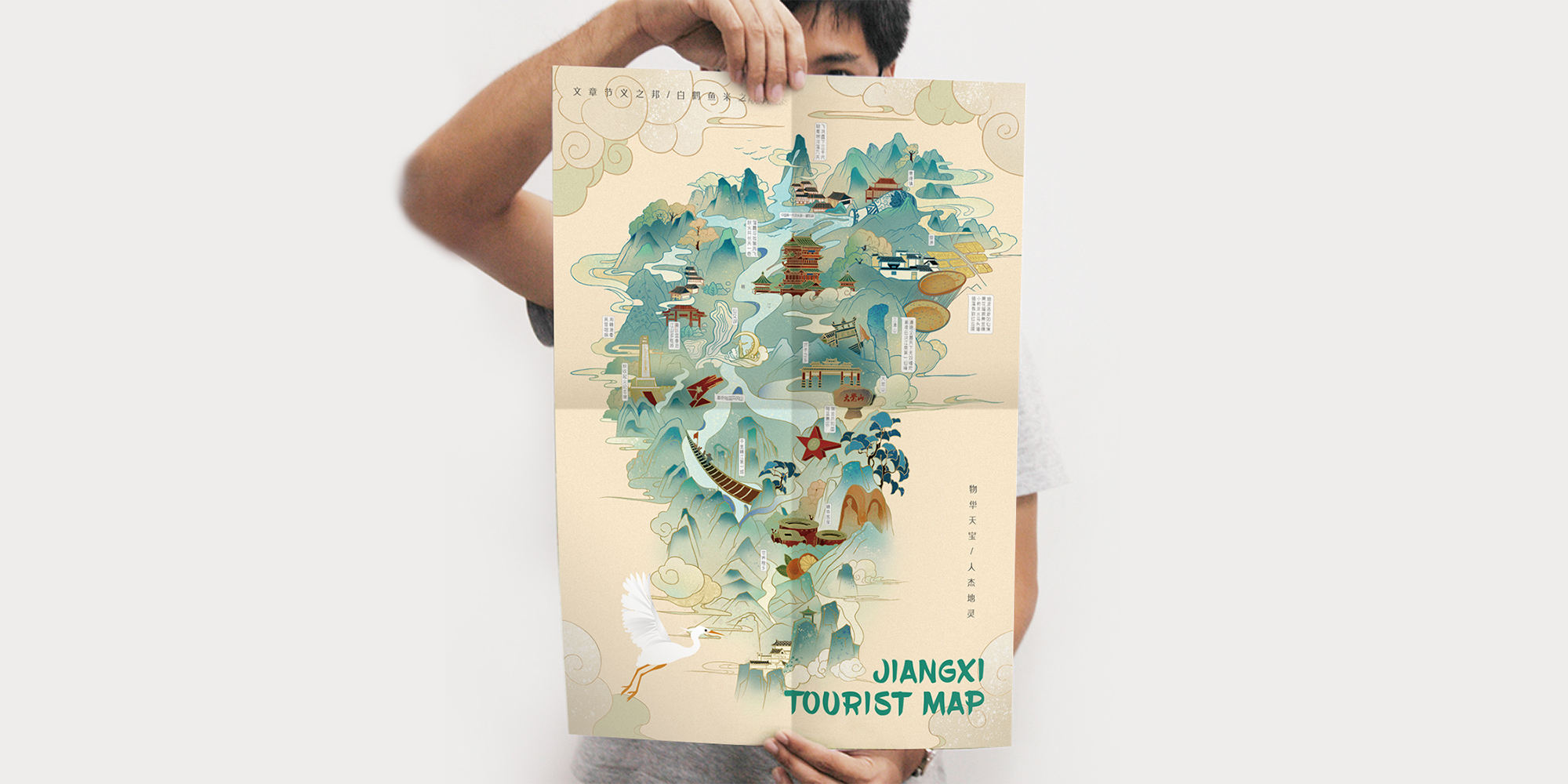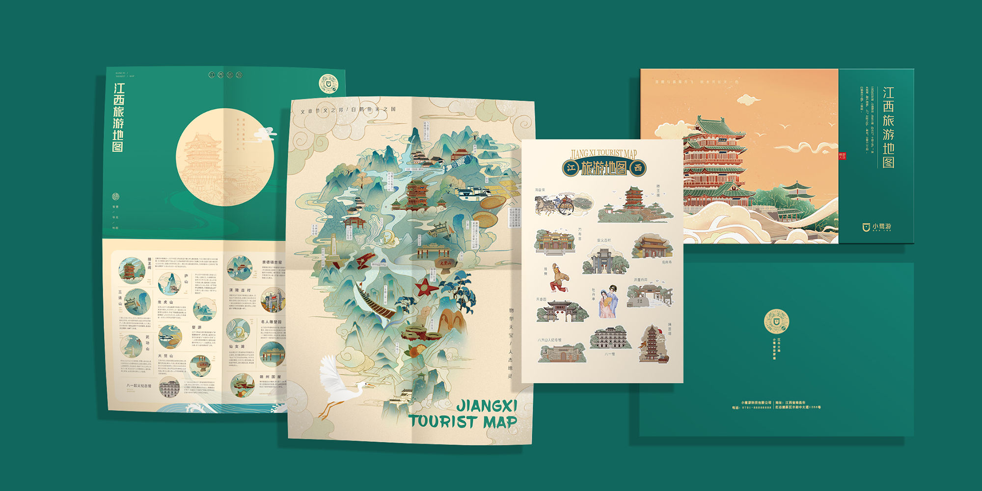 以江西地圖作為文創載體,用現代國潮的手法進行現代手法的繪制。