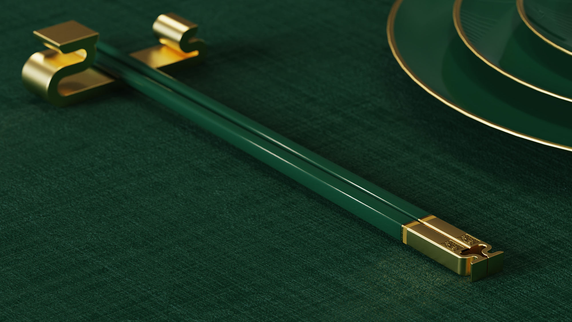 餐具根據餐品習慣以6人食為標準設計,適合全家人的用餐需求,帶有龍舟元素的筷托和筷尾工藝為金屬鑄造,并有蝕刻工藝,正弦品質。
