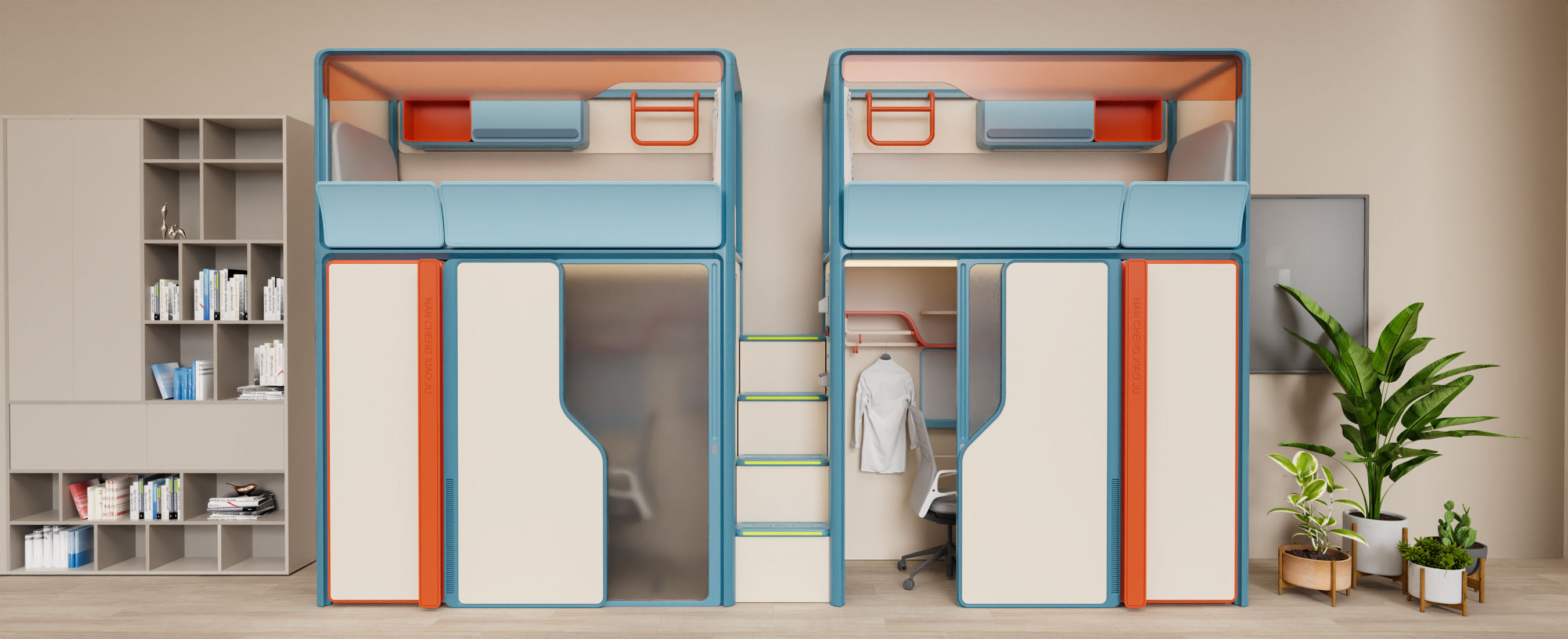 該方案著力于解決宿舍空間普遍存在的隱私性問題,同時通過現代化的設計風格使整體宿舍空間更加與人親近,最終獲得天工杯工業設計大獎。