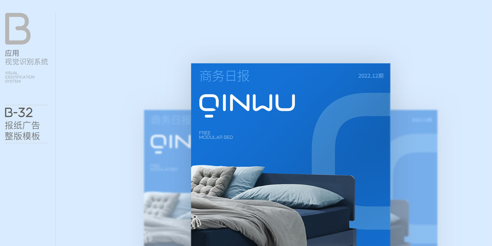 提煉天空的藍,是夢想的憧憬,是未來的期望,代表居家生活的理想化夢想色系,清新柔和,品牌感知更親和,同時融合點綴啞光金,低調品質,突顯企業品牌的專業性。